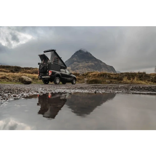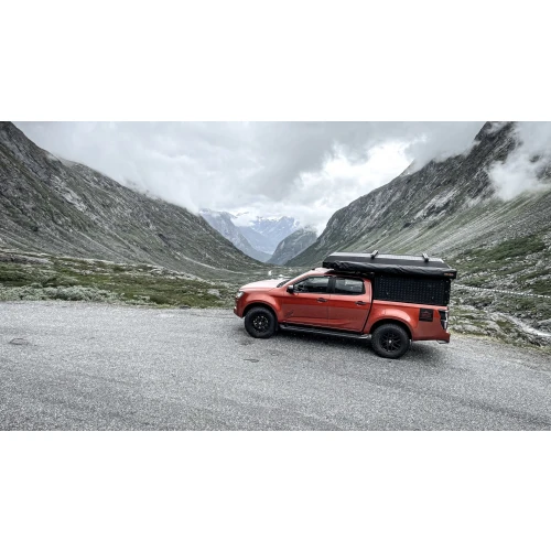 Den kombinerer lav vekt med lav profil/høyde. Den har alle fordelene som en canopy har kombinert med mulighetene og plassen en tradisjonell camper gir.