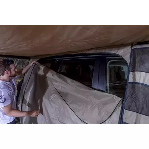 - Rear wall can be unzipped to provide access to the vehicle rear door or canopy side window