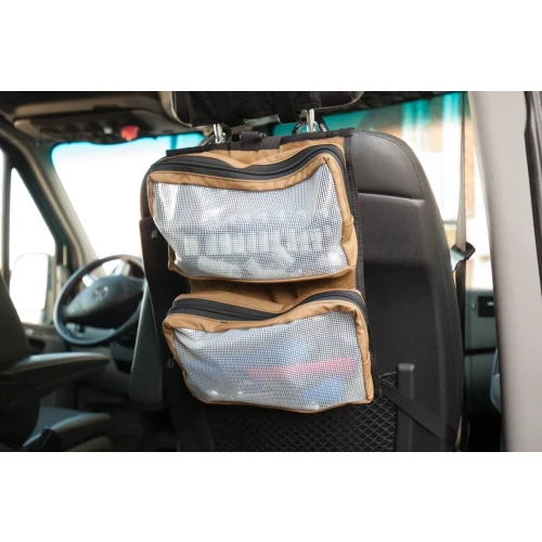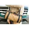 The Tool Pouch Sling is a truly versatile way to store and secure your go-to tools or even first aid items. It packs up small, but the two 12" x 6" x 2" pouches hold a lot of kit.With just a few quick snaps, it goes from a shoulder-carry sling, to a square-foot, lay-flat platform, to a panel that will clip and secure to a vehicle seat back. That's a lot of work for one kit bag!