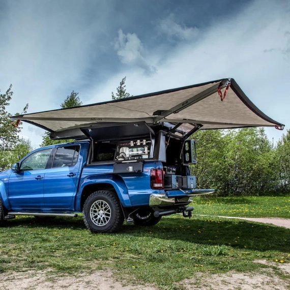 Alu-Cab Awning er utviklet både for å få skygge under Sahara's glohete sol eller beskyttelse for Bergen's klissvåte sommervær.