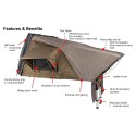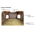 •  Når teltet er satt opp; kos deg i en stor og komfortabel seng: 1520mm (L) x 2000mm (W) x 1200mm (H – på høyeste punkt)