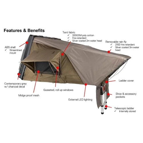 ARB's nye telt er også oppdatert i fargene, fra et grått ytterskall til fargetoner av olivengrønt på duken og rainflyen over. Fargen gjør takteltet til en anonym og et integrert element på enhver bil.