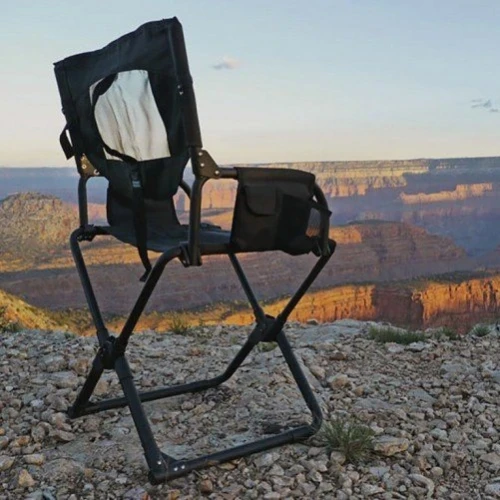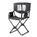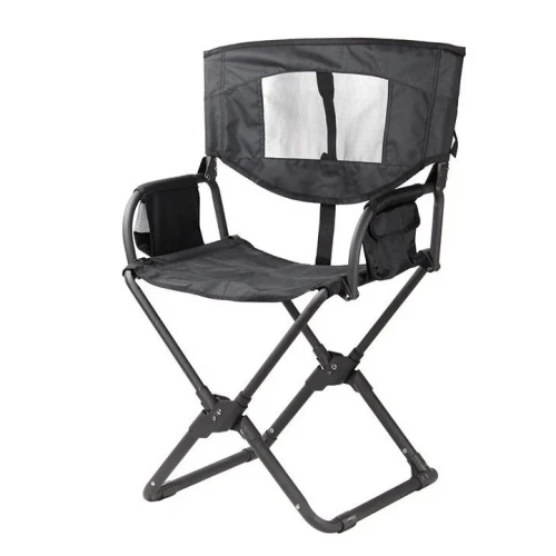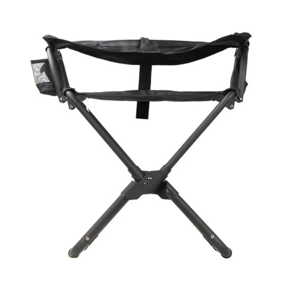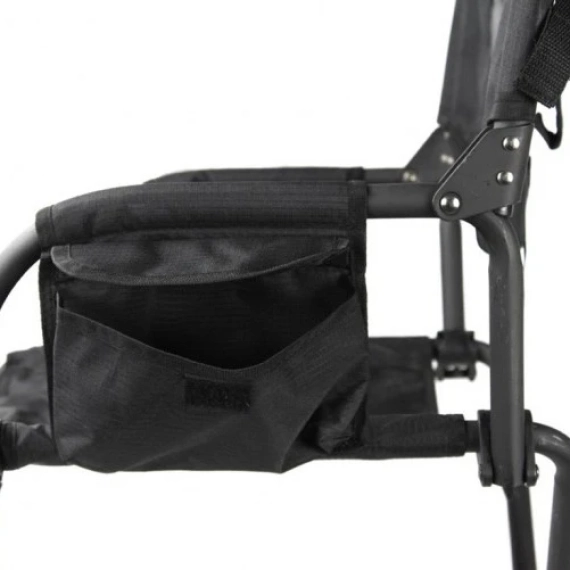 Stolen er lakkert sort matt pulverlakk med sort polyester med Rip-Stop.
