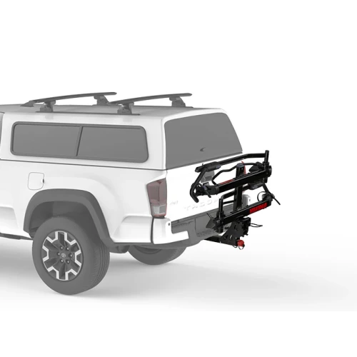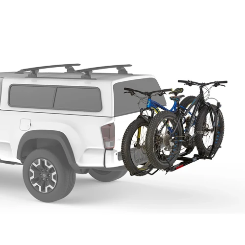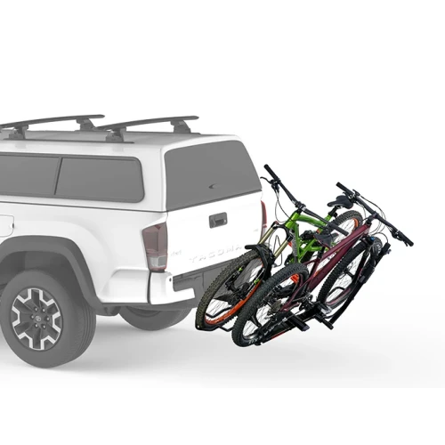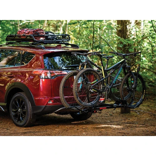 - Hitch mounted tray rack that loads quickly and carries two bikes without frame contact