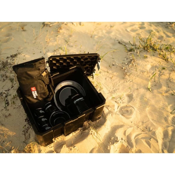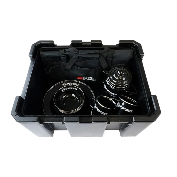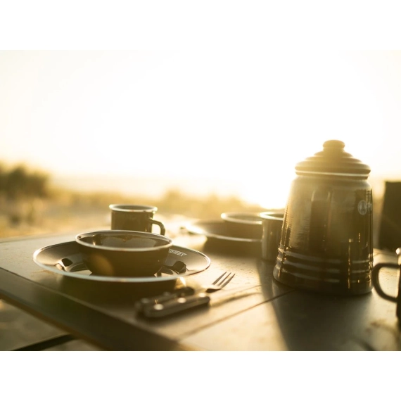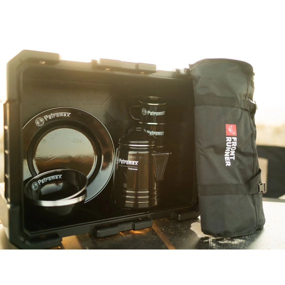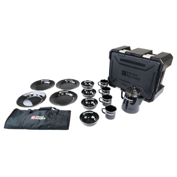 Ta utendørs matlaging til neste nivå med dette allsidige, høykvalitets servise, kasserolle og kaffesett, alt pakket praktisk i en Wolf Pack Pro. Den har den unike Perkomax Percolator kaffekanne samt fire krus, fire tallerkener og fire boller. Den kommer også med Front Runers høykvalitets 24-delers kjøkkensett