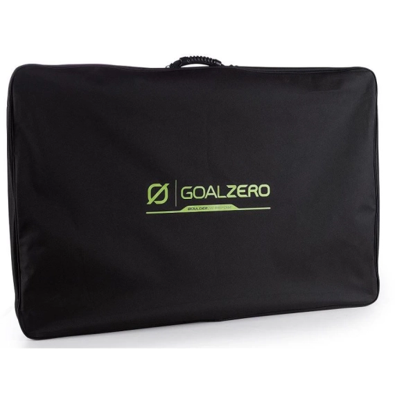 Solcellepanelet har ingen egen powerbank - det produserer strøm når det blir utsatt for sollys. Koble den til å lade en bærbar kraftstasjon. Boulder 200 Briefcase brukes best til å lade opp Goal Zero Yetis.