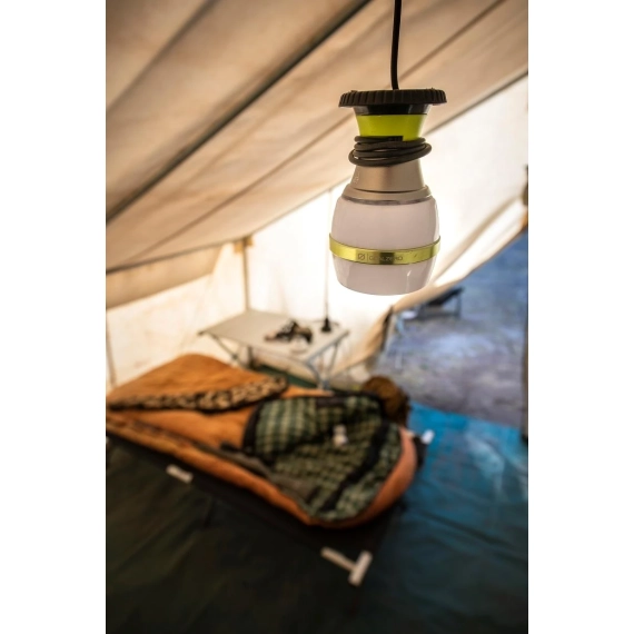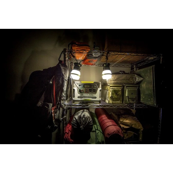 Kraftig LED camplys på hele 350 lumens, med justerbar lampeskjerm som endrer lysbilde fra indirekte til fokusert leselys. Lampen har to lysstyrker high og low. Den har dessuten en integrert lagring av ledningen slik at det ikke blir kaos der du oppbevarer dem. Passer perfekt til batteripakkene Sherpa 50 & 100 Power Packs eller Yeti Power Station ved å bruke original ledning, eller kan kobles til bilens 12V sigarettenner.