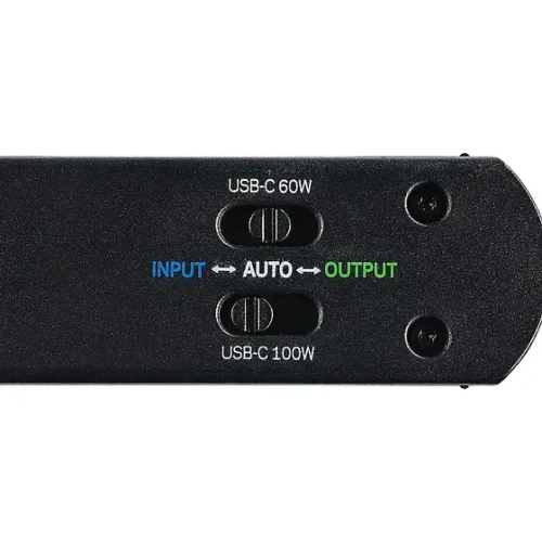 - Inkludert bryter for å tilordne inngangs-, utgangs- og automoduser til USB-C-portene.