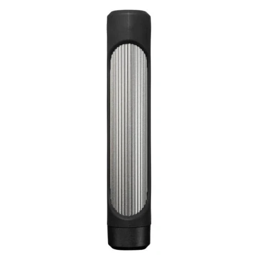 Strømknappen på undersiden av enheten kan brukes til to forskjellige formål. Du kan enkelt sjekke batteristatusen ved å trykke én gang på strømknappen og de lille blå LED-lysene på bunnen vil lyse opp. Antall lys indikerer hvor mye batteri som er igjen i powerbanken. Ved å trykke strømknappen ned i noen sekunder kan du slå på enhetens innebygde lommelykt med en lysstrøm på 50 lumen.