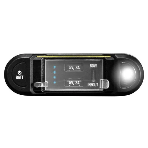 Batterikapasiteten på 19200 mAh er nok til flere ladinger og garanterer rask lading av enhetene. Med to 2,4A USB-porter og én 60W USB-C-port på reservestrømforsyningen, kan du lade flere enheter samtidig, og enheten er flott for å lade alle enheter som kan lades via USB. Med et fulladet Venture 75-batteri kan du lade smarttelefonen 5 ganger, et actionkamera 14 ganger, en hodelykt 14 ganger, et nettbrett 2 ganger og en bærbar PC én gang.