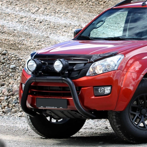 Ingen boring eller endring av panseret trengs. Monteres enkelt med små strammeklips rundt panserkanten som klemmer mot en gjennomsiktig klistrelapp som limes der klipsene står.