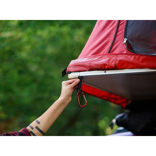 SkyHooks monteres enkelt på SkyRise takteltet. Karabin krokene glir inn i SideTrack ™ sporet på ytterkanten av SkyRise-gulvet for å oppbevare utstyret ditt på en armlengdes avstand og opp fra bakken. Nylonreimen kan holde opptil 22 kg. Så stor laks har du aldri fått. Men skulle du få det, så kan den fint henge i en Yakima Skyhook mens du varmer opp grillen!