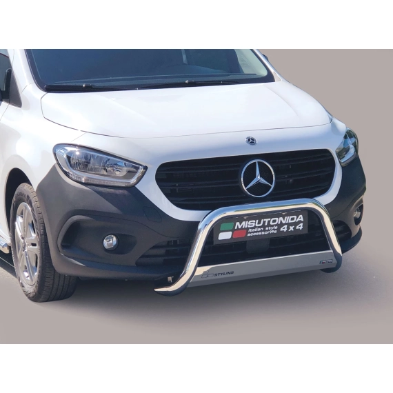 Det er noe utstyr enhver varebil må ha, og lyktebøyle med ekstralys er en av de tingene. Vi leverer EU-godkjente frontbøyler. Bøylen er laget av et 63 mm rundt rustfritt stålrør som er tilpasset bilens frontprofil og monteres med braketter på bilens ramme. Ingen drilling eller tilpassing av bilens front er nødvendig for montering.