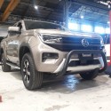 Det er noe utstyr enhver pickup må ha og frontbøyle med ekstralys er en av de tingene. Vi leverer EU-godkjente frontbøyler laget av rustfritt stålrør som følger bilens front og monteres enkelt med braketter på bilens ramme.
